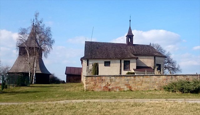 Nejstarší stavbou v obci je dřevěný kostel se sousední dřevěnou zvonicí z roku 1686. Je postaven ze silných dubových desek získaných podélným štípáním kmenů, tzv. trhanic. Desky jsou uloženy na výšku nad sebe. Tato technika není příliš obvyklá. Kostel je zasvěcen sv. Václavu a sv. Stanislavovi. Svatý Stanislav je patronem Polska a jeho zasvěcení místního kostela je dáváno do souvislosti se zdejším vlivem polských kněží v době po třicetileté válce. V nedalekých Smidarech vedli dva polští kněží duchovní správu. Život světců je pak zachycen temperovými barvami na 21 výplních trojramenné kruchty. O tři roky mladší, z roku 1689, je pak dřevěná zvonice. Je však pravděpodobné, že stavební materiál na zvonici sem byl převezen z rušené zvonice v Bydžovské Lhotce. Zvonice je v dolní části osmiboká, do patra se však zužuje na čtyřhranný tvar a končí stanovou střechou. Zpřísnění protipožárních předpisů ve 2. polovině 18. století přineslo kostelu vnější nahození silnou vrstvou omítky. Zvenčí se tak dnes kostel jeví jako zděná stavba.