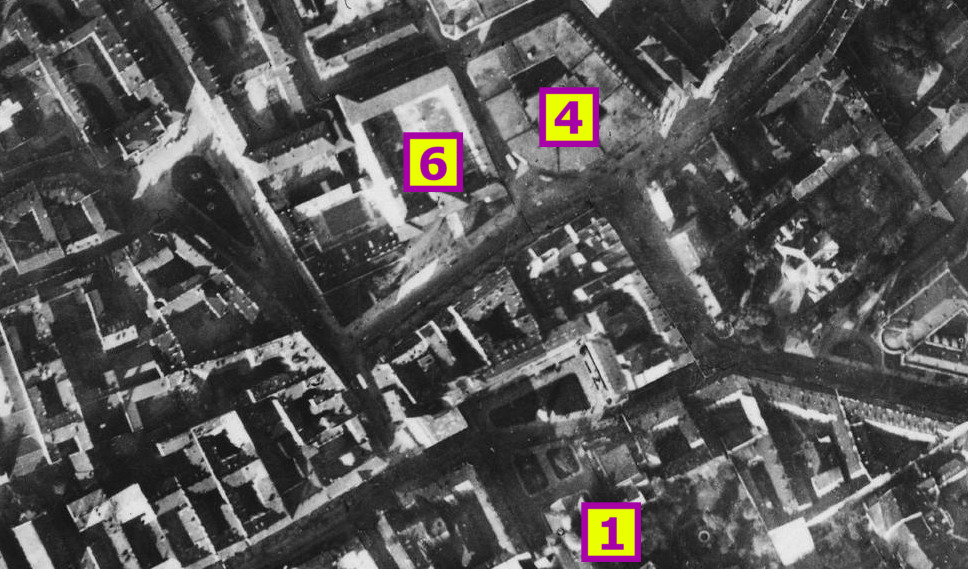 !] Below you can see four aerial photos from 1935, which show several parts of the city centre in that time. Please match the objects listed here –