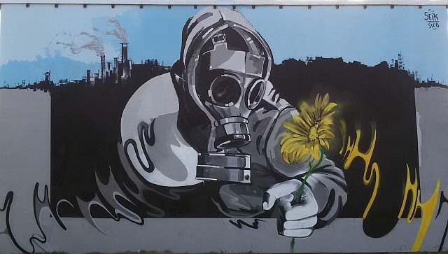 W Kędzierzynie-Koźlu powstał specyficzny mural. Obraz prezentuje postać w masce gazowej, która próbuje ratować kwiat. Dzieło popełniono na elewacji jednego z prywatnych budynków, zlokalizowanych na osiedlu Pogorzelec.