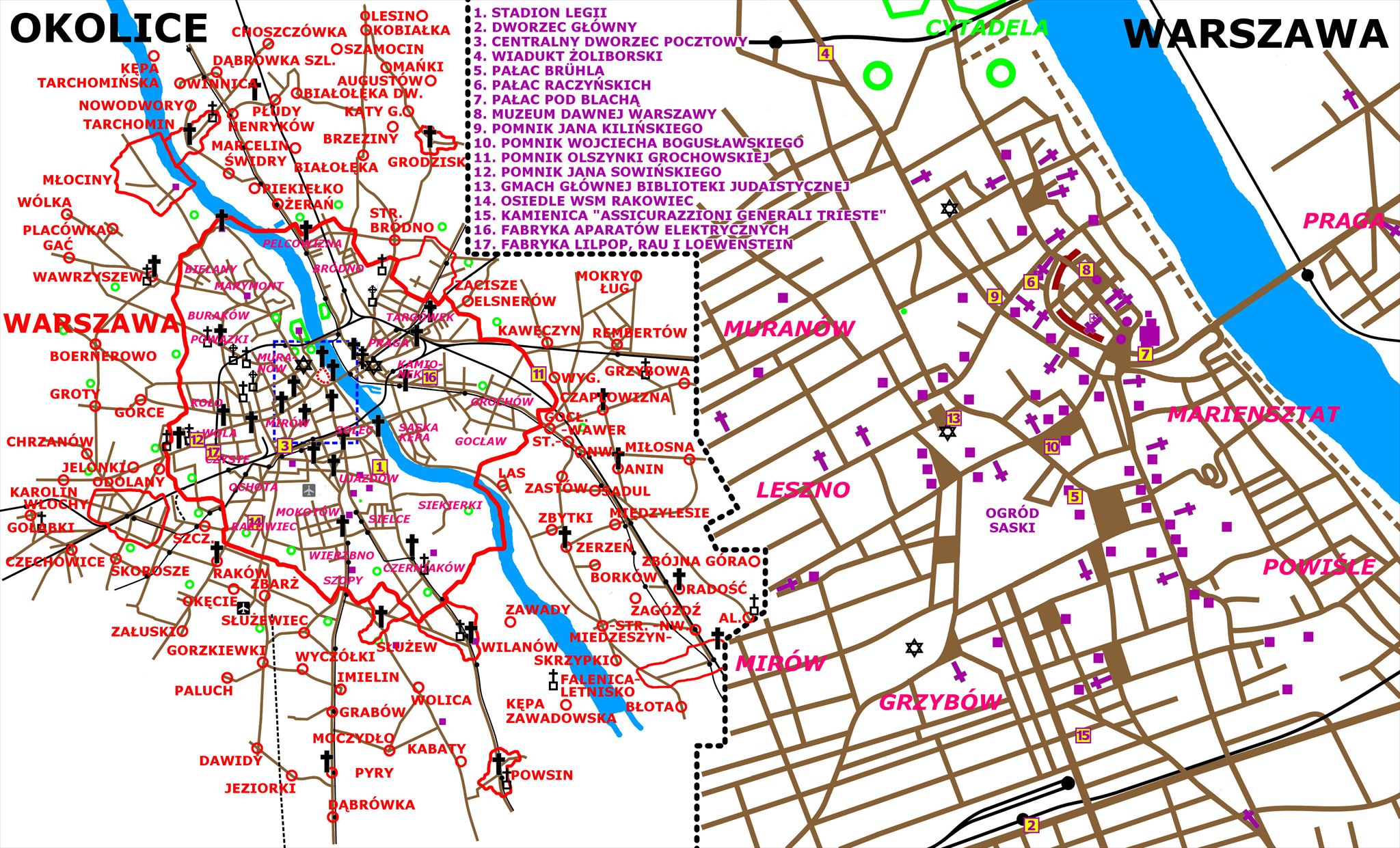>> 14 = gmach Centralnego Dworca Pocztowego przy ul. Żelaznej