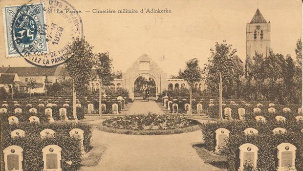 Dès la fin du mois de septembre 1914, le cimetière militaire d'Adinkerke aurait commencé, en prolongement du cimetière existant. Vers 1920, le cimetière militaire belge comptait 2 314 Belges, 466 Français et un certain nombre de morts britanniques. Peu de temps après, tous les Français (sauf un) et de nombreux soldats belges ont été fouillés pour être réenterrés ailleurs. Il y avait aussi des soldats qui ont été fouillés ailleurs et ont obtenu un dernier lieu de repos à Adinkerke. Il y avait une grande variété de signes graves. Cet amalgame de marques funéraires a été retiré lorsque des pierres tombales officielles ont été placées sur le cimetière militaire d'Adinkerke en 1924-1925 - comme sur tous les autres cimetières militaires. Lorsque les familles n'avaient pas déposé une demande pour la préservation des hommages des héros, elles ont irrévocablement disparu.
