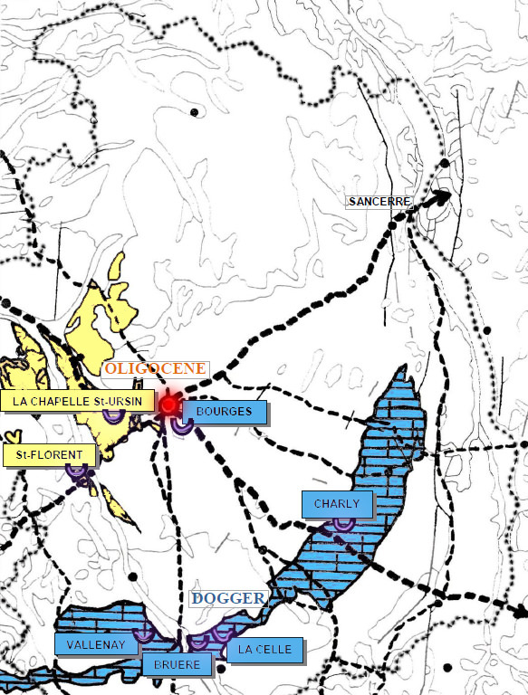 The transport of stone quarries to the cathedral was done mainly through the ancient Roman roads (dotted on the map, after Batardy C., Buchsenschutz O., Dumasy F. / dir., "The ancient Berry Middle, Men, Spaces, Atlas 2000 ".