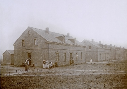 Viele Häuser hier in der Gustavstraße sehen ähnlich aus, nicht wahr? Sie gehören zu einer Siedlung, die die Zinkfabrik Altenberg in den 1890er Jahren gebaut hat. Die Arbeit in der Zinkfabrik war so schwer und ungesund, dass nur wenige Arbeiter länger dort bleiben wollten. Um Beschäftigte an das Unternehmen zu binden, bot man ihnen ein Dach über dem Kopf, denn Wohnungen waren in diesen Jahren Mangelware.