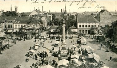 Den Platz selbst hat ein Landwirt mit großem Landbesitz der Gemeinde 1859 geschenkt. Aber unter der Bedingung, dass hier der Markt stattfinden müsse. Das Ganze nicht ganz uneigennützig: Die Flächen um den Marktplatz gehörten auch diesem Landwirt und Kaufleute zahlten ihm viel Geld für Grundstücke am Marktplatz. Neben dem Bahnhof wurde der Markt das zweite Zentrum Oberhausens.