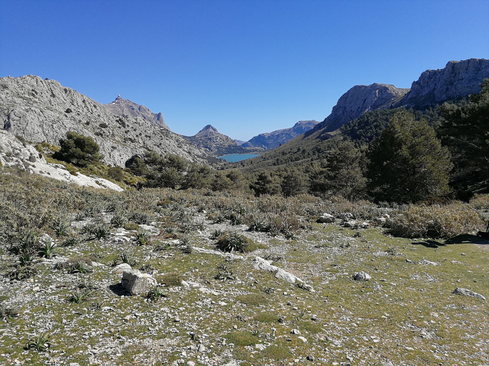 The fourth stage from Sóller to Lluc (30 km) is the longest but one of the most beautiful. It begins with a climb over Es Barranc de Biniaraix, reaches the reservoirs Cuber and Gorg Blau and runs between the Massanella and the Serra dels Teixos, then upwards over Ses Voltes d'en Galileu to Lluc. With good weather a tour of extraordinary beauty.