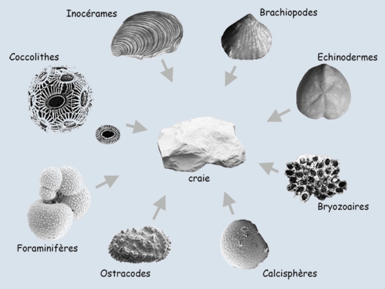 Quelques composants de la craie (échelle non commune)