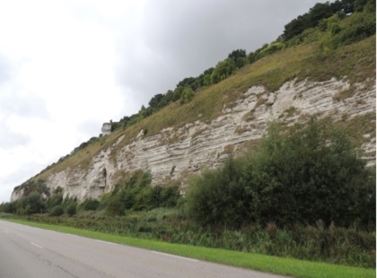 Cette EarthCache va vous faire découvrir une petite falaise qui se situe dans la vallée de Rogerville et plus précisément dans le bois d’Oudalle. Cette falaise est une falaise de craie datant du Crétacé supérieur (l’âge Cénomanien datant de -100,5 à -93,9 Ma). On peut en voir de beaux spécimens en descendant le long de la route des falaises.