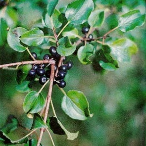 Rhamnus is a genus of about 110 accepted species of shrubs or small trees, commonly known as buckthorns in the family Rhamnaceae. Rhamnus species are shrubs or small to medium-sized trees, with deciduous or rarely evergreen foliage. Its species range from 1 to 10 meters tall. The fruit of most species contain a yellow dye and the seeds are rich in protein. Oils from the seeds are used for making lubricating oil, printing ink, and soap.