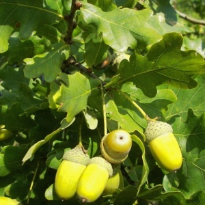Quercus robur, commonly known as common oak or English oak, is native to most of Europe west of the Caucasus. It is a long-lived tree, with a large wide spreading crown of rugged branches. The acorns form a valuable food resource for several small mammals and birds.