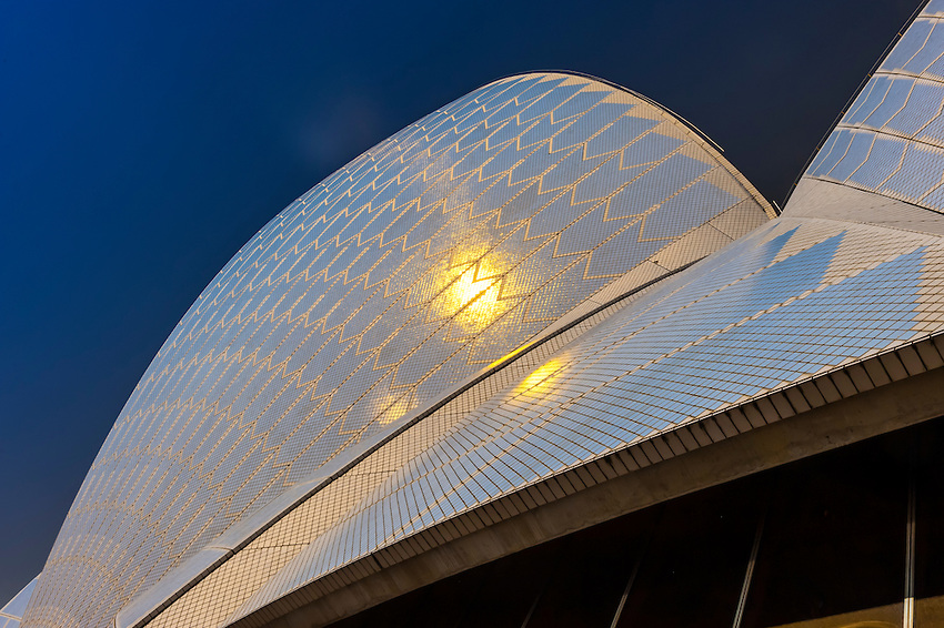 Utzon wanted the shells to contrast with the deep blue of Sydney Harbour and the clear blue of the Australian sky. The tiles needed to be gloss but not be so mirror-like to cause glare. Three years of work by Höganäs of Sweden produced the effect Utzon wanted in what became known as the Sydney Tile.