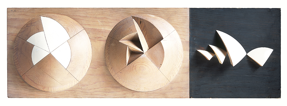 Utzon was stacking the shells of the large model to make space when he noticed how similar the shapes appeared to be. Previously, each shell had seemed distinct from the others. But now it struck him that as they were so similar, each could perhaps be derived from a single, constant form, such as the plane of a sphere.The simplicity and ease of repetition was immediately appealing.