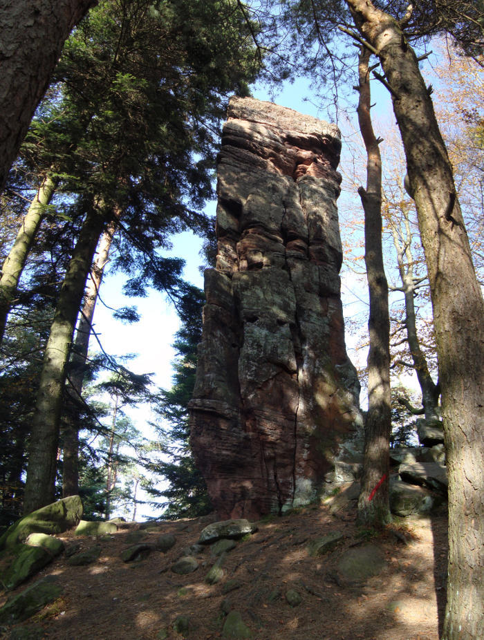 Monolithe de la Spille. Perdu en pleine foret avec une terrasse et une belle vue au sommet situé entre Saverne et Dabo.