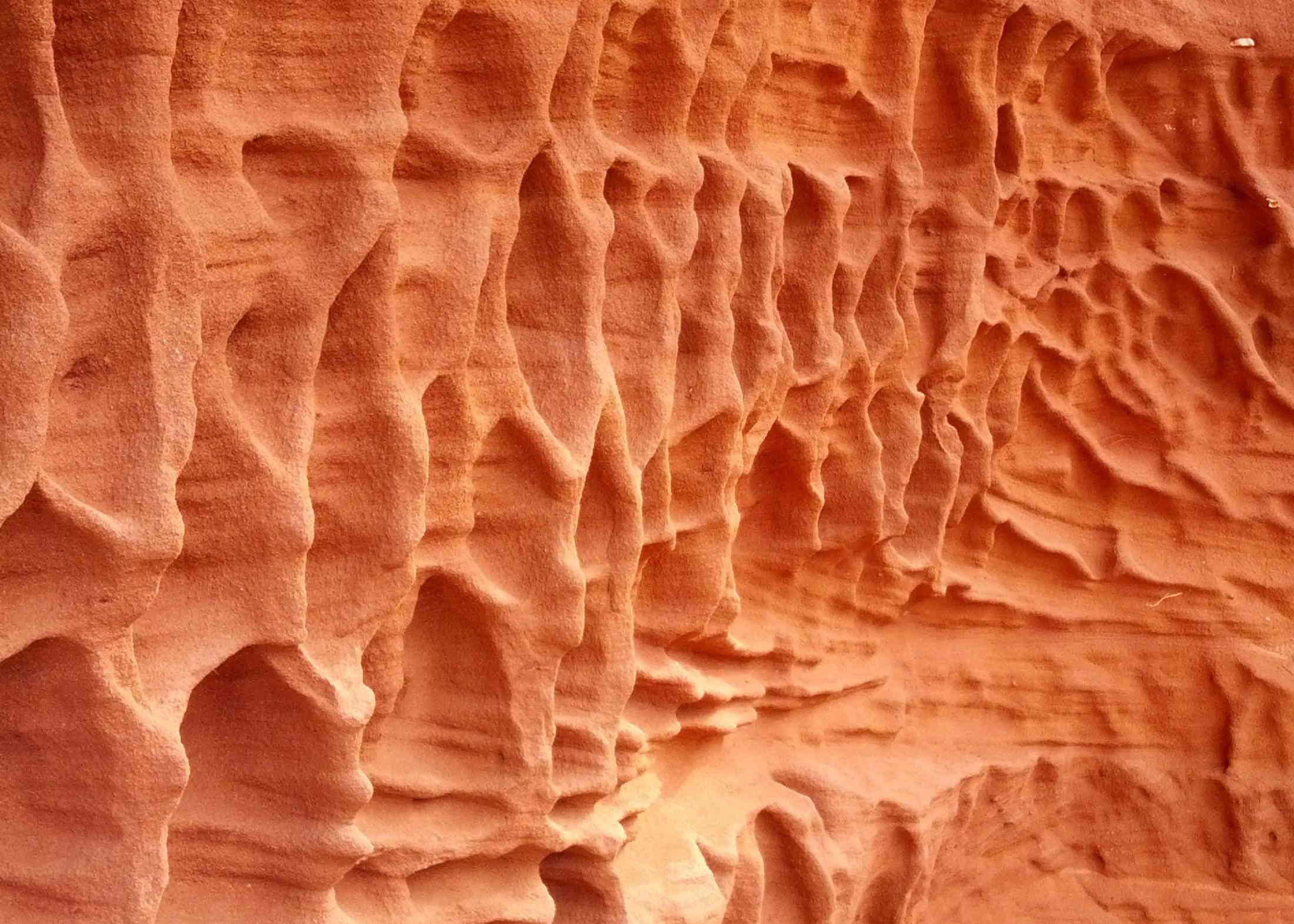 Le grès, ou Sandstein (pierre de sable, en Allemand) est un ancien sable soudé. Cette roche est composée de grains de quartz, de feldspath et de micas liés entre eux par un ciment siliceux, ce qui assure sa résistance et sa dureté. Proche de la composition des granites, on en déduit que les grès proviennent de l’érosion des roches granitiques. La coloration rose est due à la présence d’oxyde de fer provenant de la rubéfaction. Ce phénomène correspond à l’altération des minéraux riches en fer comme le mica noir (biotite) et la magnétite qui libèrent leur fer qui migre vers les grains voisins et les recouvrent d’une fine pellicule rose.