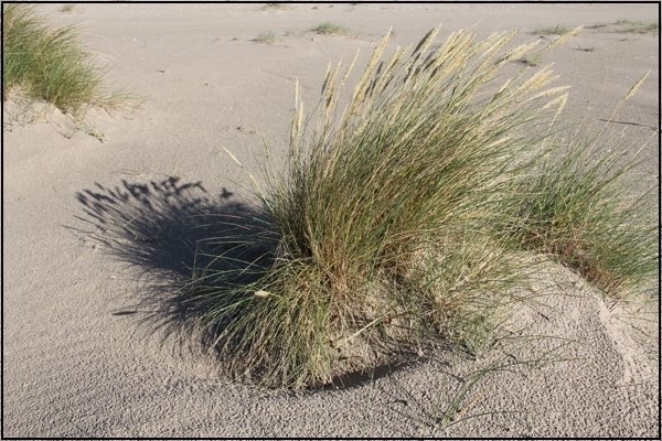 2. The tussocks and “tongue”-dunes are the most common dune formation in Denmark. You see them on all the beaches where there is a little wind. Like very small tussocks, “tueklitter”, by a tuft of grass eg. or as a bit larger “tongue” dune at larger sheltering obstackles such as large grasses like lyme grass or stones and bunkers. A “tongue” dune will be an elongated, sand accumulation behind the shelter. A “tongue” dune can achieve a height of 15-25 times the height of the shelter. When the tussocks and “tongue” dunes grows, a larger sand cover is created.