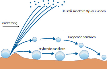 1. Det kan krybe – dvs. de større sandkorn glider hen over overfladen