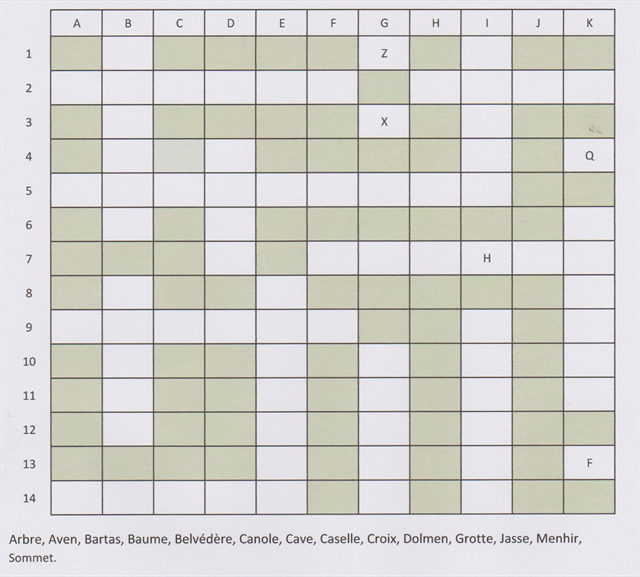 Pour trouver les coordonnées, il faudra résoudre cette modeste grille de mots croisés, avec la liste des endroits où bidule12 aime bien placer ses boîtes.