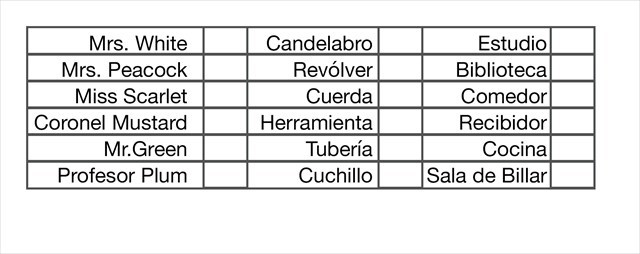 Todos hemos jugado alguna vez al juego de mesa CLUEDO en el que se produce un asesinato y nos metemos en la piel de un detective para descubrir al asesino, el arma homicida y el lugar del crimen. Para ello debemos ir descubriendo las cartas de los demás jugadores y, por eliminación, averiguar las tres incógnitas.