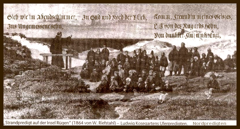 „Er war der Hippie unter den Romantikern“, sagt Pastor Christian Ohm aus Altenkirchen auf der Insel Rügen über seinen Amtsvorgänger von vor 200 Jahren. Ludwig Gotthard Kosegarten (1758-1818), so meint Ohm, fiel auf. Ein laxer Typ, unkonventionell gekleidet und ungewöhnlich locker, wohl auch in seiner Art zu predigen. Einfach draußen, mitten in der Natur. „Gott wohnt nicht in Tempeln“, erklärte er den einfachen Fischern, die sich dicht am Hafen zu den später berühmt gewordenen „Uferpredigten“ in Vitt einfanden. „Wir leben in ihm.“ In der Natur sei Gott zu finden, in ihrer Schönheit offenbare er sich.