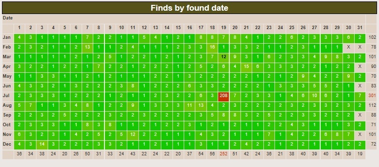Here's my "Finds by found date" chart to prove I met this challenge: