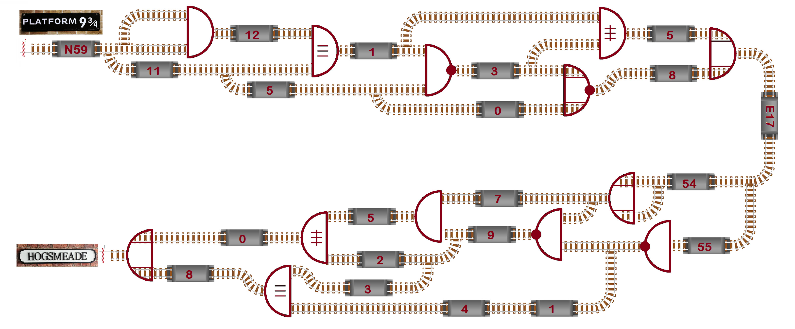 Det är viktigt att inga mugglare ser tåget, men Hagrid som är ansvarig för att alla elever kommer fram till Hogwarts har glömt bort vilken väg tåget egentligen brukar åka. Han minns bara att det brukar vara många tunnlar och att tåget måste ta sig igenom ett antal grindar, samt att det såklart inte kan vara på mer än ett ställe åt gången. Det kan heller inte teleportera sig - som sagt är det trots allt en mugglaruppfinning.