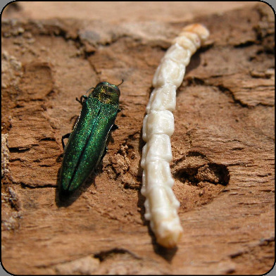 The Emerald Ash Boer (EAB), an invasive insect from Asia, is considered to be one of the worst alien forest pests to ever be introduced to North America. Since 2002, ash trees across large portions of the United States, Ontario and Quebec have been devastated by the EAB infestation. EAB lay their eggs in ash trees. The larvae eat the soft wood under the tree’s bark, preventing the tree from moving water and nutrients between its roots and leaves, and killing it within one to three years.