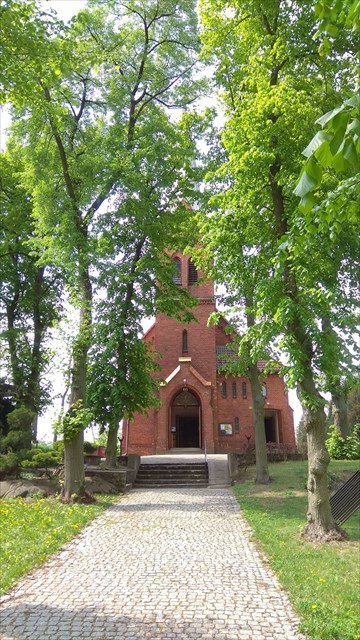 Poewangelicki kościół Niepokalanego Serca N.M.P. został wybudowany w 1902 roku w stylu neogotyckim. W 1946 roku został poświęcony i oddany Katolikom. Parafia została erygowana przez Kardynała Stefana Wyszyńskiego w 1976 roku. Kilka lat temu zabytek gruntownie odnowiono (m.in. wstawiono nowe witraże i odremontowano całe wnętrze). W sąsiedztwie kościoła znajduje się dawny, XIX-wieczny park.
