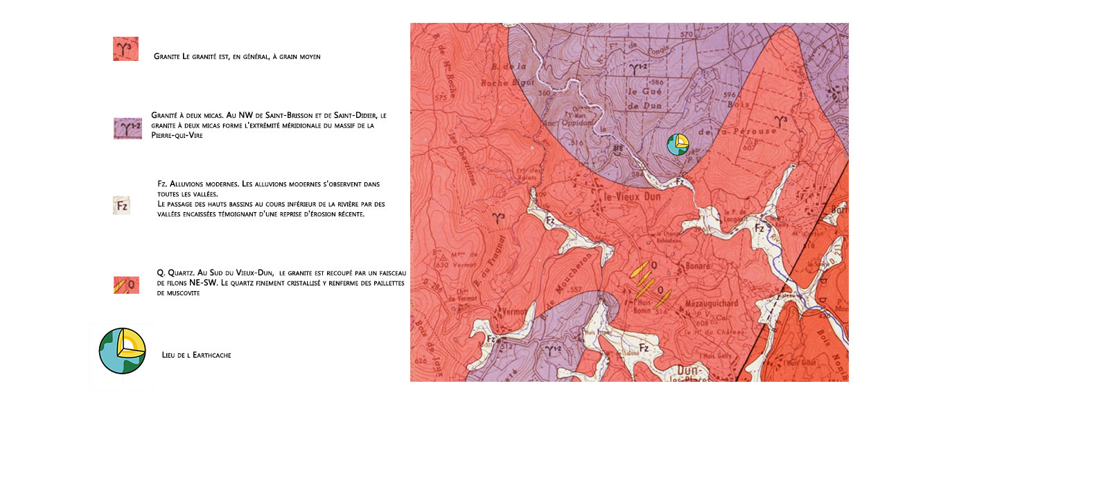 Rappel concernant les « Earthcaches »: Il n'y a pas de conteneur à rechercher ni de logbook à renseigner. Il suffit de se rendre sur les lieux et d'éxécuter les requêtes du geocacheur.