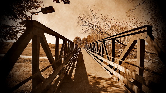 Diese 1911 von Louis Eilers erbaute Balkenbrücke ist noch für Fußgänger und Radler passierbar.