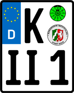Noch ein wichtiger Hinweis: Das Onlinetool, mit dem ich die meisten Kennzeichen erstellt habe, (http://nummernschild.heisnbrg.net/fe/) kann leider auf den Zulassungsplaketten keine Umlaute darstellen. Deshalb steht auf der Plakette z.B. Stadt Koln, anstelle von Stadt Köln. Außerdem hält es bei den besonderen Kennzeichen nicht immer die korrekten Mindestabstände zwischen Buchstaben und Zahlen ein. Das heißt in Bezug auf Frage A, dass ein Kennzeichen auch dann als real zählt, wenn auf der Zulassungsplakette ein Umlaut nicht richtig dargestellt wird, oder wenn die Darstellung des Kennzeichens nicht exakt der Anlage 4 der Fahrzeugzulassungsverordnung entspricht.