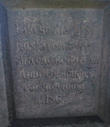 Tato socha jest postavena ke cti a chvále Boží od Anny Čermákovy rozené Cittovy r.1865
