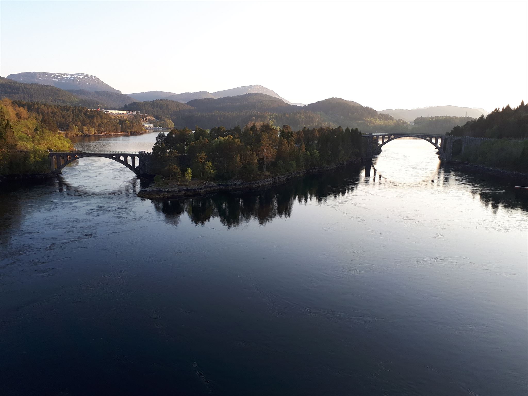 The two old bridges were earlier part of the national road over Skodjestraumen.