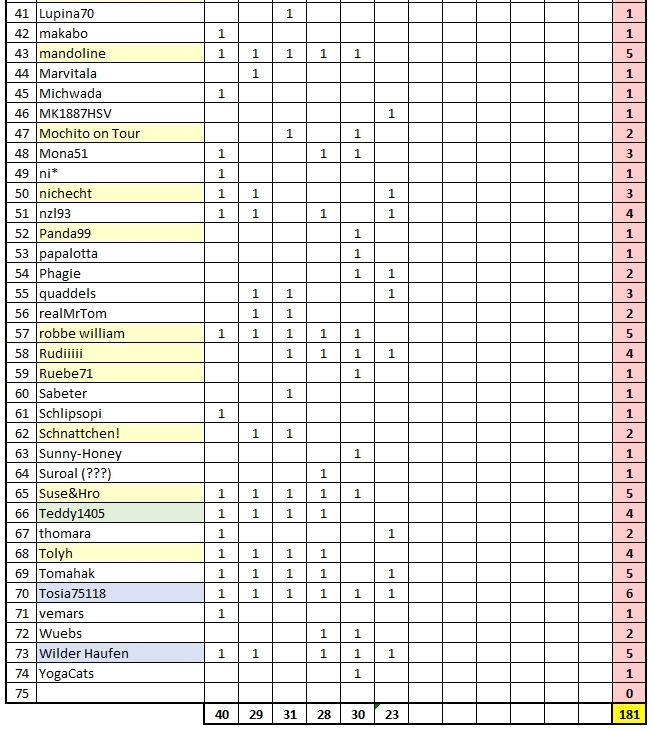 PS2. Für sporadische Teilnehmer – vorbei kommen und loggen ist auch okay (aber kein Titel)!