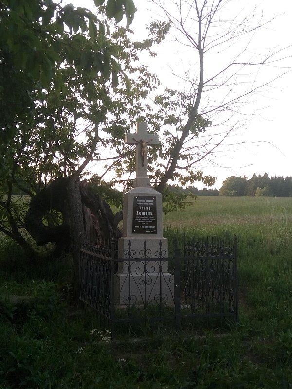 Kamenný pomník ve tvaru křížku se nachází mezi obcemi Chaloupky a Nový Rychnov. Postaven byl rodiči Josefa Zemana na jeho památku, poté co zemřel při konání vojenské povinnosti v Uhrách během 1. světové války. Josef Zeman zemřel ve 22 letech, a jelikož rod Zemanů z Chaloupek neměl dalších mužských potomků, pokračoval jen v ženské rodové linii prostřednictvím sestry Josefa Zemana, provdané Rásochové. Rod Rásochů dodnes žije v Novém Rychnově.