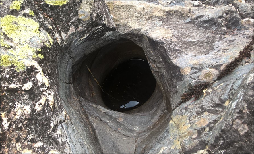 5) (Mandatory) Take a picture of yourself in the coordinates, clearly identified next to the giant's kettle to be attached to the register. In case it is not a selfie, a photo of your fingers / hand holding a paper with the nick and the date of the visit. It is considered a unique photo by a geocacher who wants to register the cache. Example.