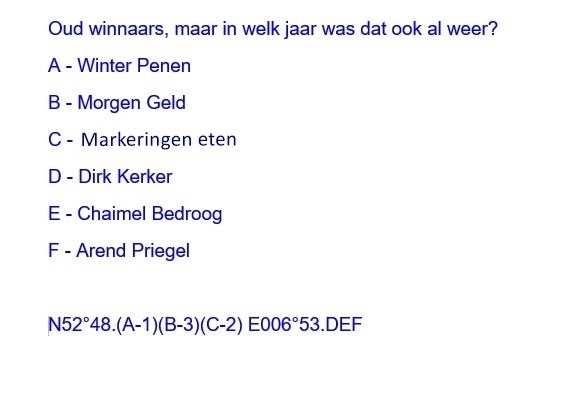 Bovenstaande coördinaten zijn fictief. Los eerst de puzzel op om de coördinaten van de cache locatie te verkrijgen.