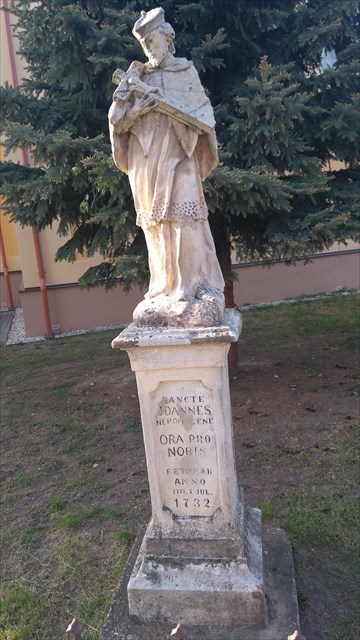 A templomkert Szeredi utcára néző részében található. Barokk stílusban, 1732-ben készült. A hidak szentjeként és a gyónási titok vértanújaként tisztelik.