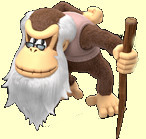 Cranky Kong ist der Vater von Donkey- und Funky Kong, aber auch Mann der verstorbenen Wrinkly Kong und Star des ersten Arcadespiels. |