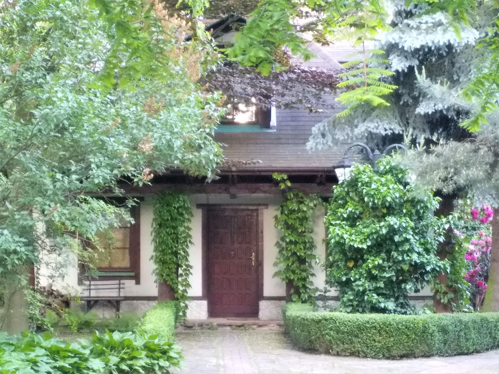 Współrzędne przyprowadziły Cię przed dawną posiadłość państwa młodych. Wokół domu urządzono park według projektu Franciszka Szaniora, twórcy Parku Skaryszewskiego na Pradze którego część można podziwiać. Zwróć uwagę na to, ile kolumn podpierających ganek znajduje się obecnie na terenie posesji. To będzie Twój X.