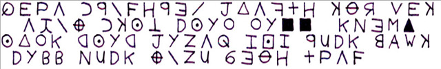 Sofort schlüpft er in seine Latex Handschuhe und beginnt den Brief vorsichtig zu öffnen. Im Brief befindet sich ein einzelnes Blatt mit seltsamen Zeichen.