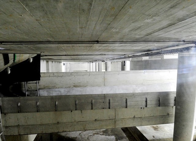 Oben befindet sich ein angelegter Bolzplatz, zehn Meter darunter steht eine tiefgaragengroße Halle aus Beton, in der bei Regen das Wasser mehrere Meter hoch steht. Das Becken in Hochzoll schafft 1,1 Millionen Liter. Bei starkem Regen werden die Bauten als Zwischenspeicher genutzt, damit das Wasser nicht in die Flüsse läuft.