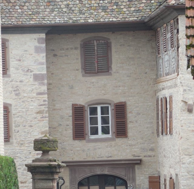 Nous sommes ici devant l’entrée Nord du château ; pour mieux l’apprécier (il vaut vraiment le détour !), nous vous invitons à débusquer la cache « Le Château fort de Breuschwickersheim » de Moupsy 😊
