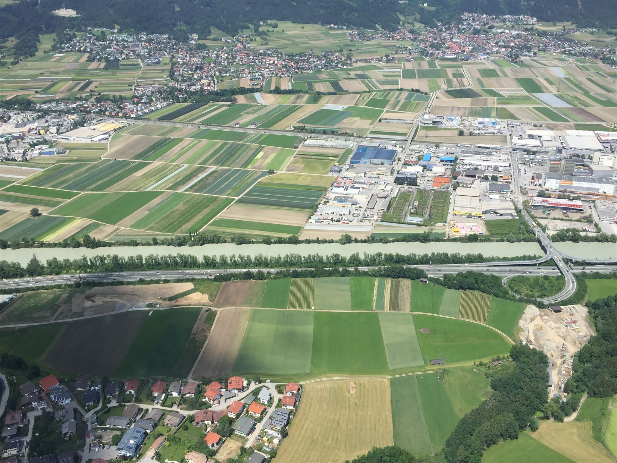 Blick aus der Luft auf das südliche Innufer – aerial view at the southern bank of the river Inn