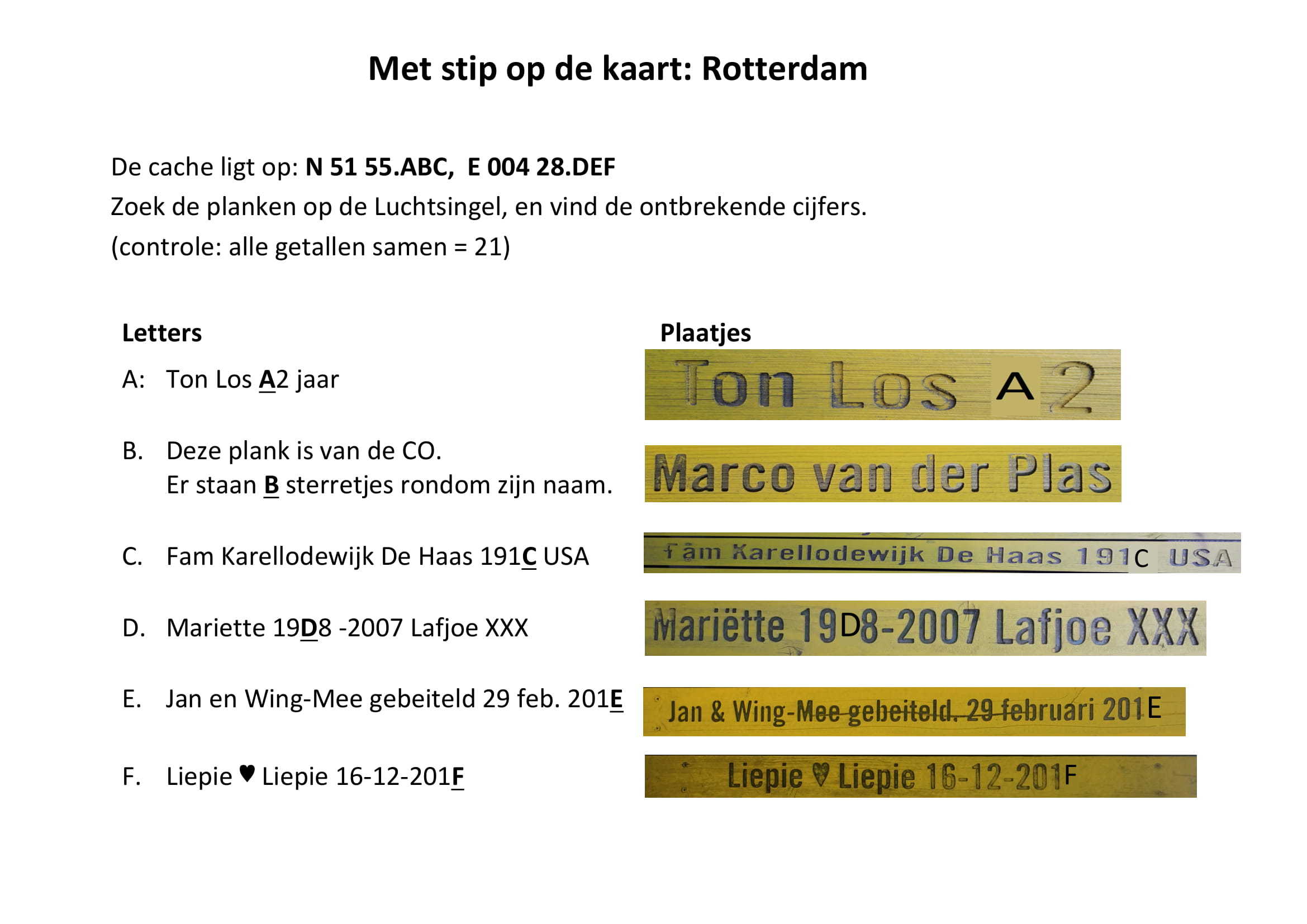 Op de Luchtsingel zoekt u een aantal planken. Hierop staan getallen die u nodig heeft voor de eindcoordinaat (zie plaatje)..