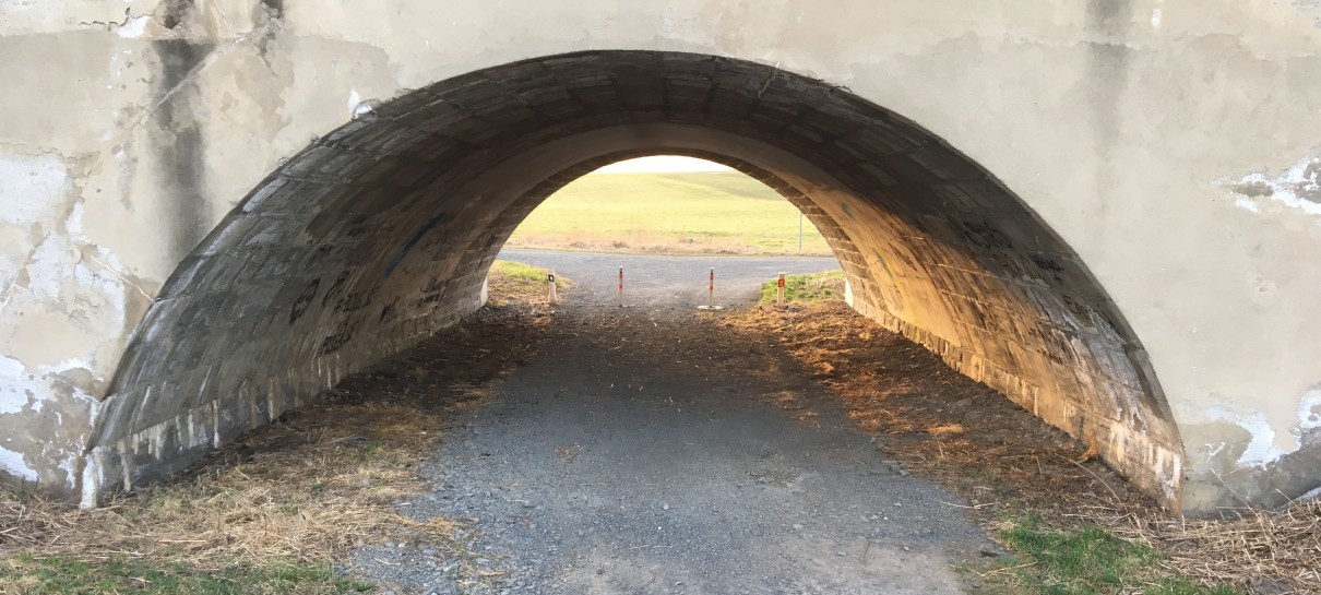 V tomto případě jde o podjezd pod železnicí. Určitě nechoďte nahoru na koleje. Z výchozích souřadnic vejděte do "myší díry", vše potřebné je uvnitř.