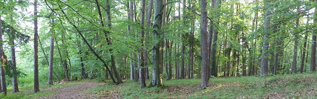 Stage 05 markiert eine Stelle an der der Weg einen sanften Grat passiert und sich in einer Linkskurve nach Nordosten wendet. Blick dich an diesem Punkt im Wald um.