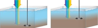 The disc is mounted on a pole or line, and lowered slowly down in the water. The depth at which the disk is no longer visible is taken as a measure of the transparency of the water. This measure is known as the Secchi depth and is related to water turbidity. Since its invention, the disk has also been used in a modified, smaller 20 cm diameter, black and white design to measure freshwater transparency.