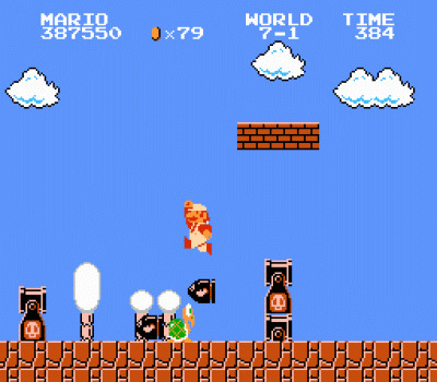 Bullet Bills are recurring enemies in the Mario series. They are black, bullet-like enemies, commonly depicted as either having small arms or fanged grins adorning their faces, rarely having both. Bullet Bills are fired by cannons known as Bill Blasters, although some games have them fired by other sources such as Snifits and generic cannons, while some games simply have them coming out of nowhere. Subspecies of Bullet Bills include Banzai Bills and Cat Bullet Bills. Bullet Bills can be easily dodged, but it becomes harder when there are more of them.