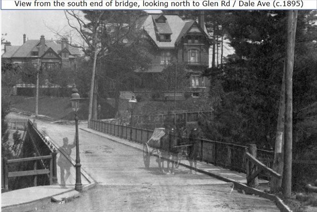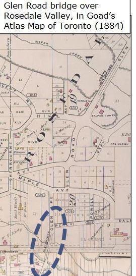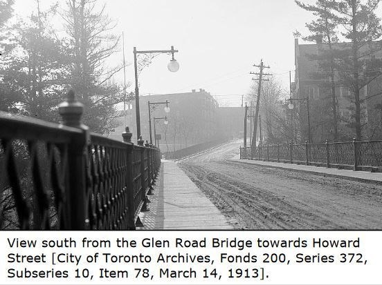 Glen Road Pedestrian Bridge was constructed in 1973. It replaced an older motorist bridge that dated back to 1929. Records show there has been a bridge at this location as early as 1884! It is also known as the Morley Callaghan footbridge. You can read more about this famous Toronto author at the posted coordinates.