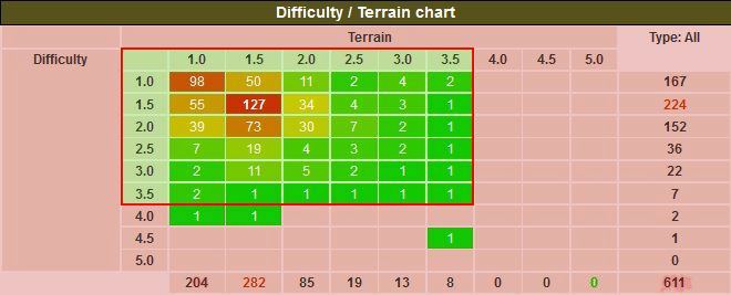 Nachdem einige Cacher sich durch die bisherigen Caches der Serie 4x4 und 5x5 Matrix ermutigt fühlten, an ihrer D/T Matix zu arbeiten, folgt nun der nächste Schritt zur vollständigen Matrix.