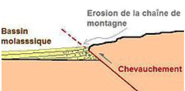 La molasse est une roche sédimentaire s'accumulant dans des bassins d'avant-pays en périphérie des chaînes de montagne.